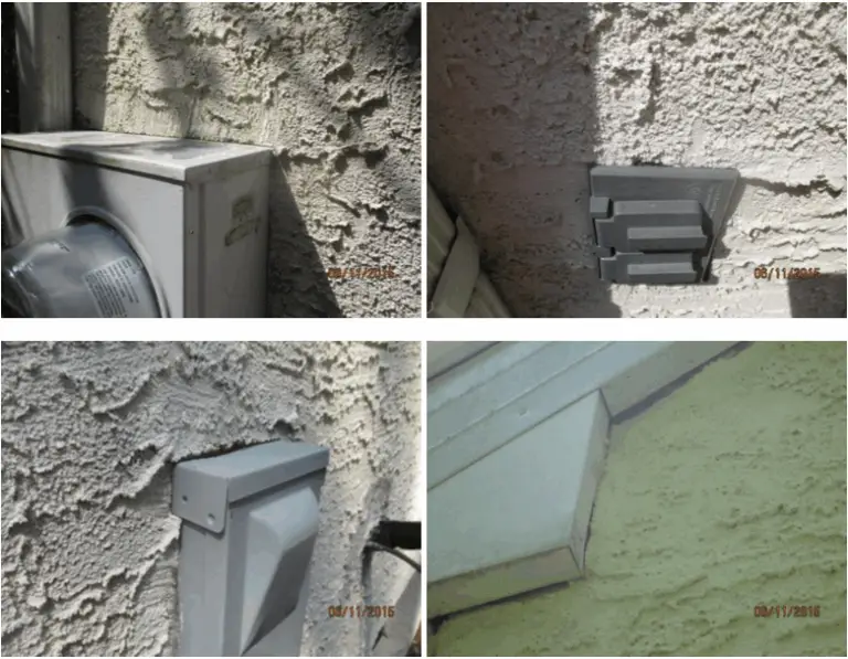 Dryer vents, electric outlets, light fixtures and pipes are no different than a window or any other opening around the house, first is the builder’s duty to make sure that this openings and fixtures are always seal from inside to outside. Is the contractor’s duty to treat each of this fixtures as a window, starting to seal from the bottom to the top, we at Rene Munoz Plastering know how critical this spots are and we always install a piece of azek trim around pipes, electrical outlets, light fixtures and all necessary opening to cap and later seal them.